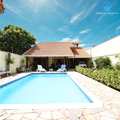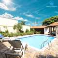O ponto focal do piso térreo é a deslumbrante área externa, que inclui uma piscina de excelente tamanho, perfeita para se refrescar nos dias ensolarados.